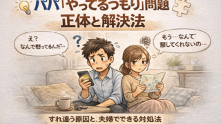夫婦・家族関係 パパはスタンプ、ママは地図を見ている──「やってるつもり問題」の正体と解決法 家事をやっているのに「伝わらない」と感じる理由は、努力不足ではありません。この記事では、パパは“点”、ママは“線”で家事を見ているという視点から、すれ違いが起きる原因と共有のヒントを整理します。 2025.11.30 夫婦・家族関係